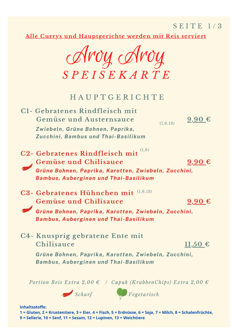 Aroy Aroy Thai Food Menu